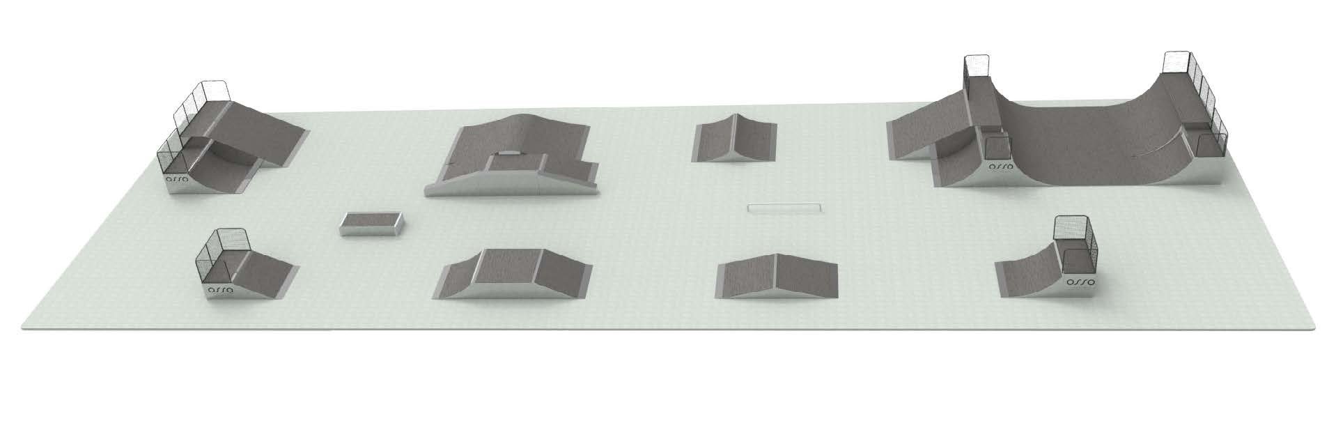 - QUARTER 1500 (1.1.2) - QUARTER 1200 (1.1.1) - PLANTER (4.1.1) - WAVE (3.7.1) - GRINDBOX (3.2.3) - HUBBA DOBLE (3.11.1) - SPINE 1200 (3.15.1) - RAIL SIMPLE (4.16.1) - MINIRAMP 1200 (5.3.1) - MINIRAMP 1500 (5.3.2) - BANK MINIRAMP 1500 (2.6.2) - QUARTER MINIRAMP 1200 (1.6.2) - FLYBOX 900 (3.18.1) -