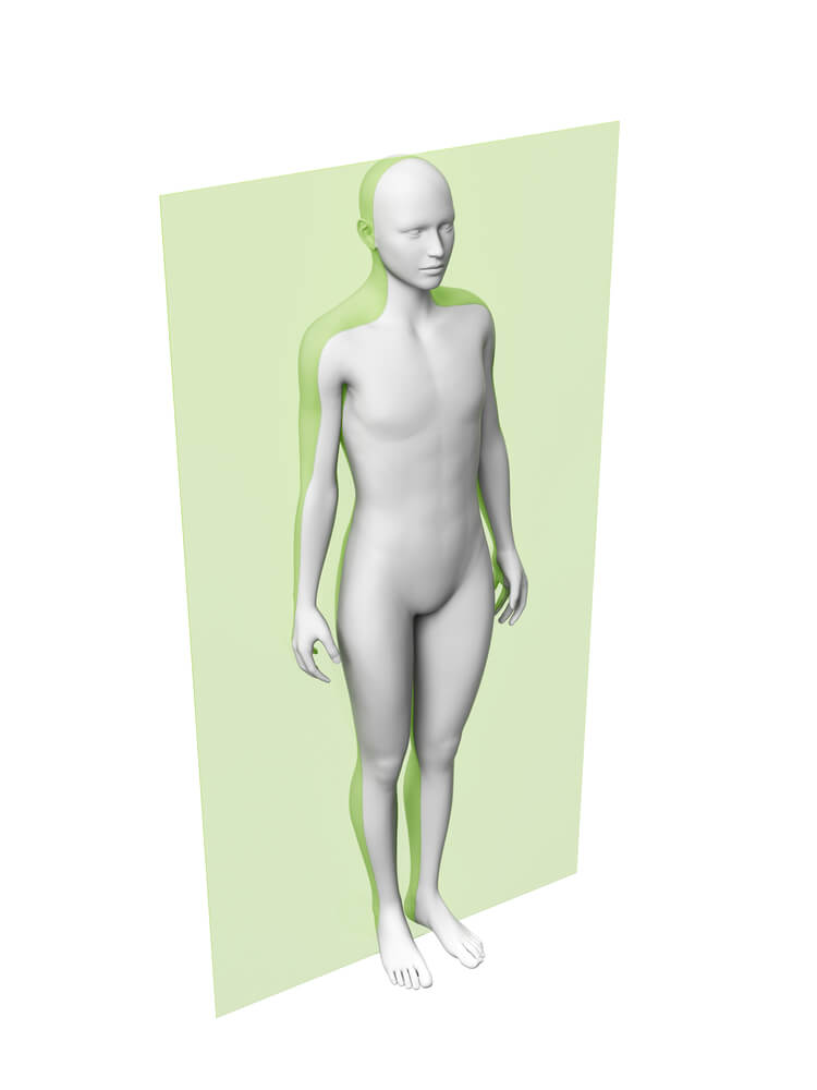 Pero primero, vamos a hablar de anatomía, la bandera humana incide principalmente en un plano frontal, como se puede ver en la imagen.
